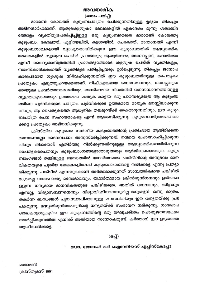 The preface written by the late lamented Rt Rev Dr. Joseph Marthoma